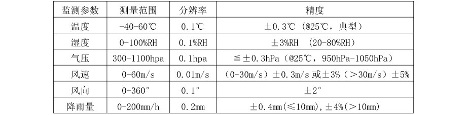 測量原理:風速風向(超聲波),雨量(翻斗)