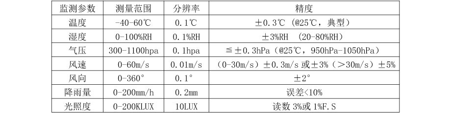 測(cè)量原理:風(fēng)速風(fēng)向(超聲波),雨量(光學(xué))